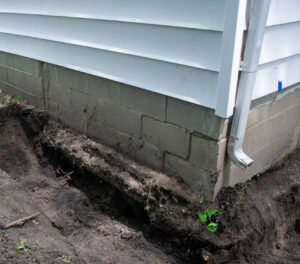 Could indicate settlement or water-related issues on the outside of the foundation.